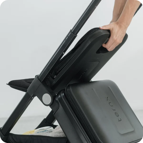 Yes! TernX features 18L of built-in luggage space plus 2L under seat basket capacity, allowing you to store essential items like nappies, snacks, toys, and travel accessories. It eliminates the need for an additional carry-on bag, keeping everything you need in one compact, easy-to-manage solution.